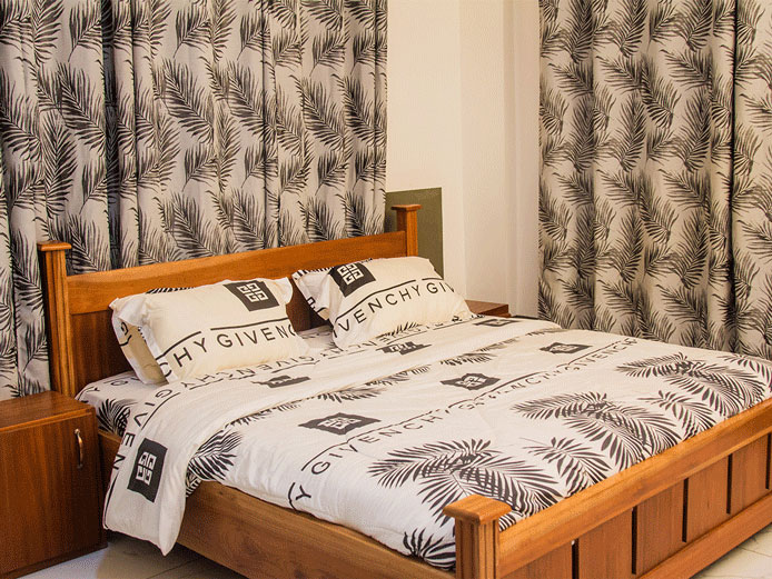 ☑️+Bathroom, Body soap, Washer, Iron, Clothing storage, TV, Air conditioning, Ceiling fan, CCTV Cameras outside the property monitoring the compound and street, Smoke alarm, Fire extinguisher, Wifi, Kitchen and dining, Refrigerator, Microwave, Cooking basics, Stove, Oven, Hot water kettle, Outdoor, Outdoor furniture, Long term stays allowed