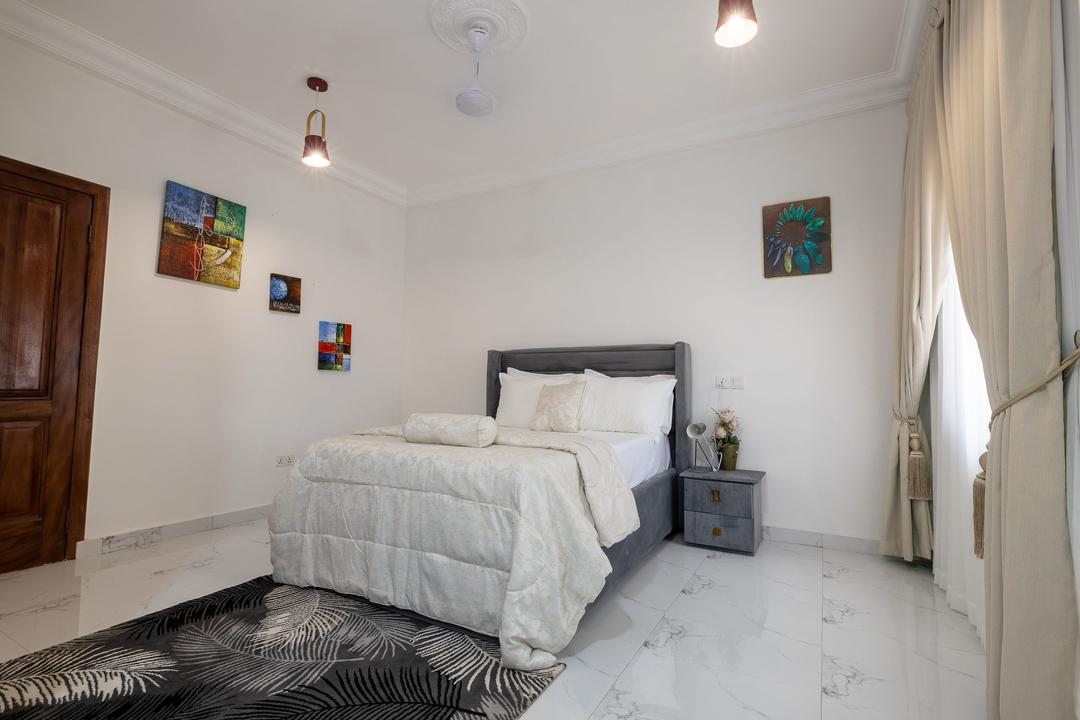 ☑️+Bathroom, Body soap, Washer, Iron, Clothing storage, TV, Air conditioning, Ceiling fan, CCTV Cameras outside the property monitoring the compound and street, Smoke alarm, Fire extinguisher, Wifi, Kitchen and dining, Refrigerator, Microwave, Cooking basics, Stove, Oven, Hot water kettle, Outdoor, Outdoor furniture, Long term stays allowed